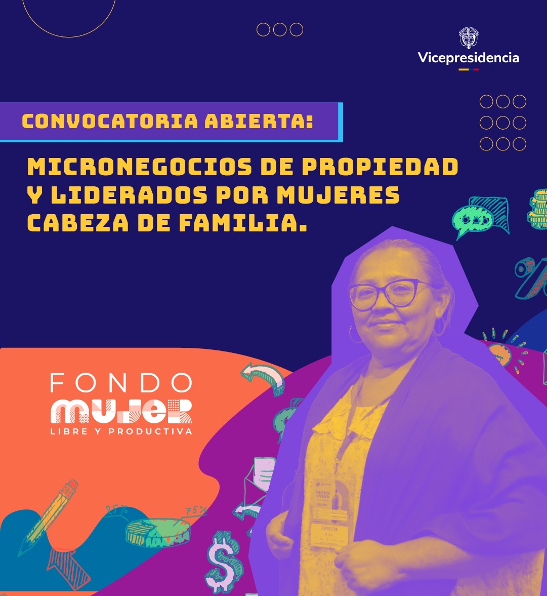 El Fondo Mujer Libre y Productiva adelanta una convocatoria para seleccionar micronegocios de propiedad y liderados por mujeres cabeza de familia, que participarán en la Ruta Micronegocios, orientada a potenciar los procesos de autonomía económica de las mujeres mediante el fortalecimiento de sus micronegocios.